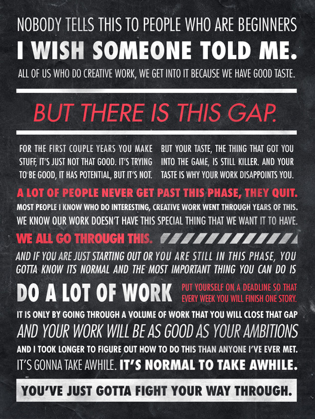 당신이 창의적인 일을 갓 시작했거나 아직 이 과정에 있다면, 당신은 이 과정은 너무나도 당연한 것이란 걸 알아야 한다.